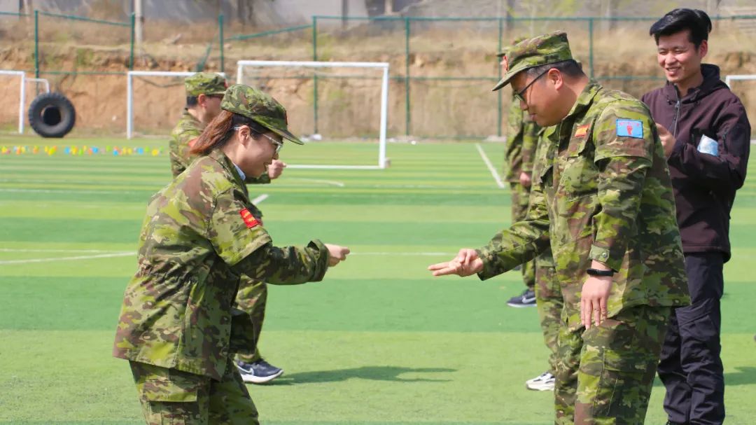 開(kāi)訓(xùn)前,在破冰啟航環(huán)節(jié)——【智勇通關(guān)】項(xiàng)目中,每組選一個(gè)大魔王來(lái)防守別隊(duì),該隊(duì)隊(duì)員依次挑戰(zhàn)大魔王,石頭剪刀布定輸贏,贏了直接通過(guò),輸了轉(zhuǎn)一圈,回來(lái)接著挑戰(zhàn),再輸即增加圈數(shù),直到全部隊(duì)員通過(guò)。大家把團(tuán)隊(duì)當(dāng)成了自己的“城堡”,在“對(duì)抗魔王”中,每個(gè)隊(duì)員都拼盡全力,期待被幸運(yùn)女神光顧,期待團(tuán)隊(duì)能盡早完成任務(wù),大家的歡笑聲、喝彩聲灑滿(mǎn)了訓(xùn)練場(chǎng)。