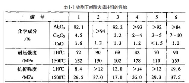 高純度鉻剛玉耐火澆注料的性能